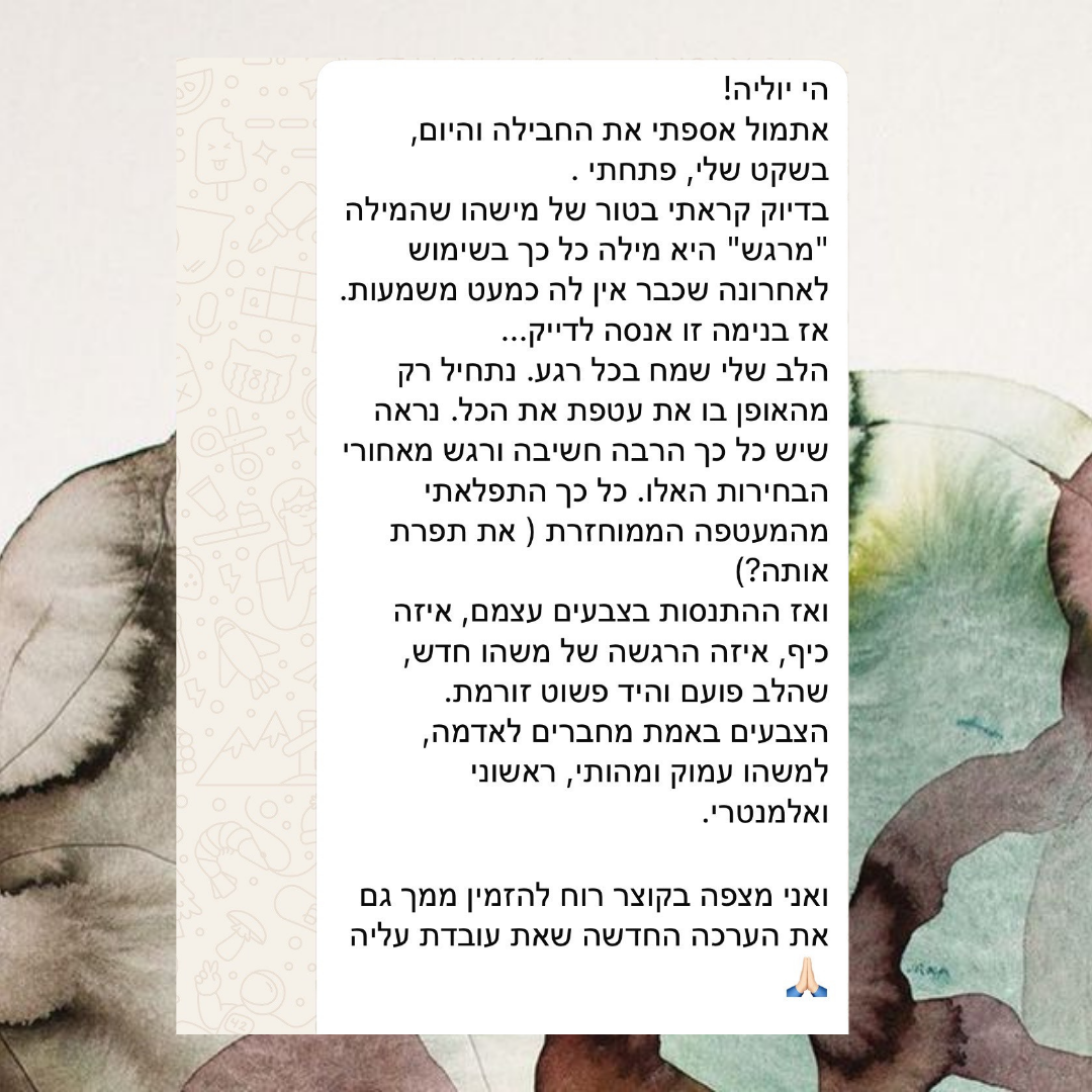 כל צבעי המים שאני מכינה עשויים רק מפיגמנטים טבעיים, ניצוצות של הטבע עצמו.