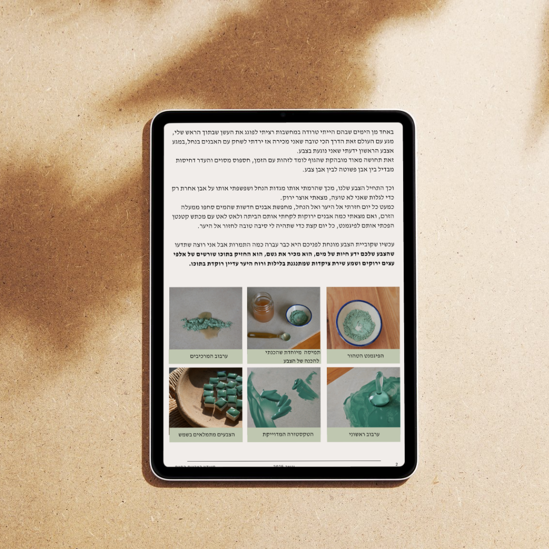 - מחשבות אישיות: תובנות והשראות מתוך ההבנה והידע שלי שיעוררו בכם יצירתיות וחיבור אישי לצבע.