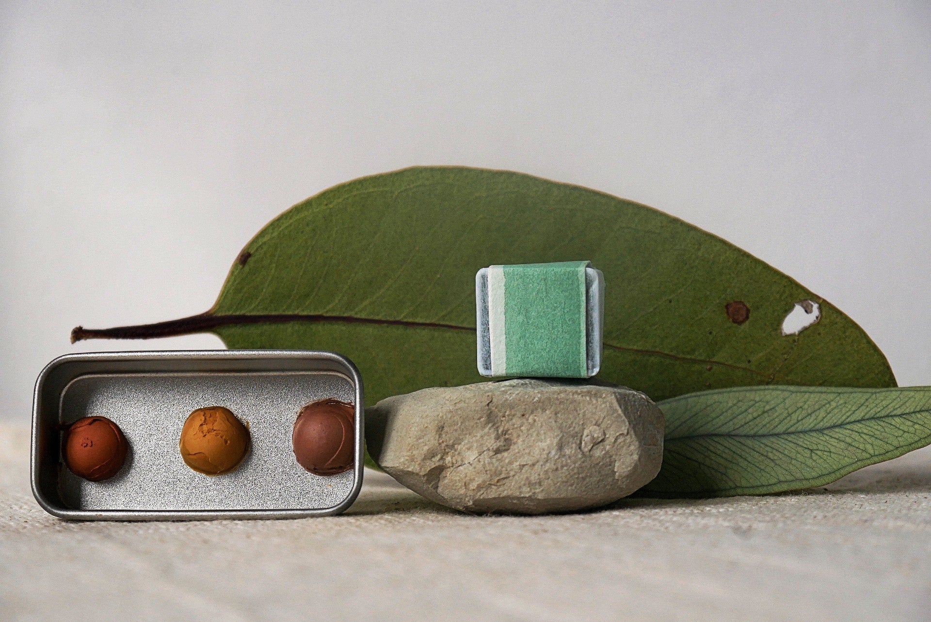 בכל חודש תקבלו חצי קוביית צבע אחת שעשוייה מהצבע המרכזי שעליו אנחנו לומדים החודש, בנוסף לקוביה תקבלו דף עם שתי וריאציות נוספות שנוצרו מאותו הפיגמנט.