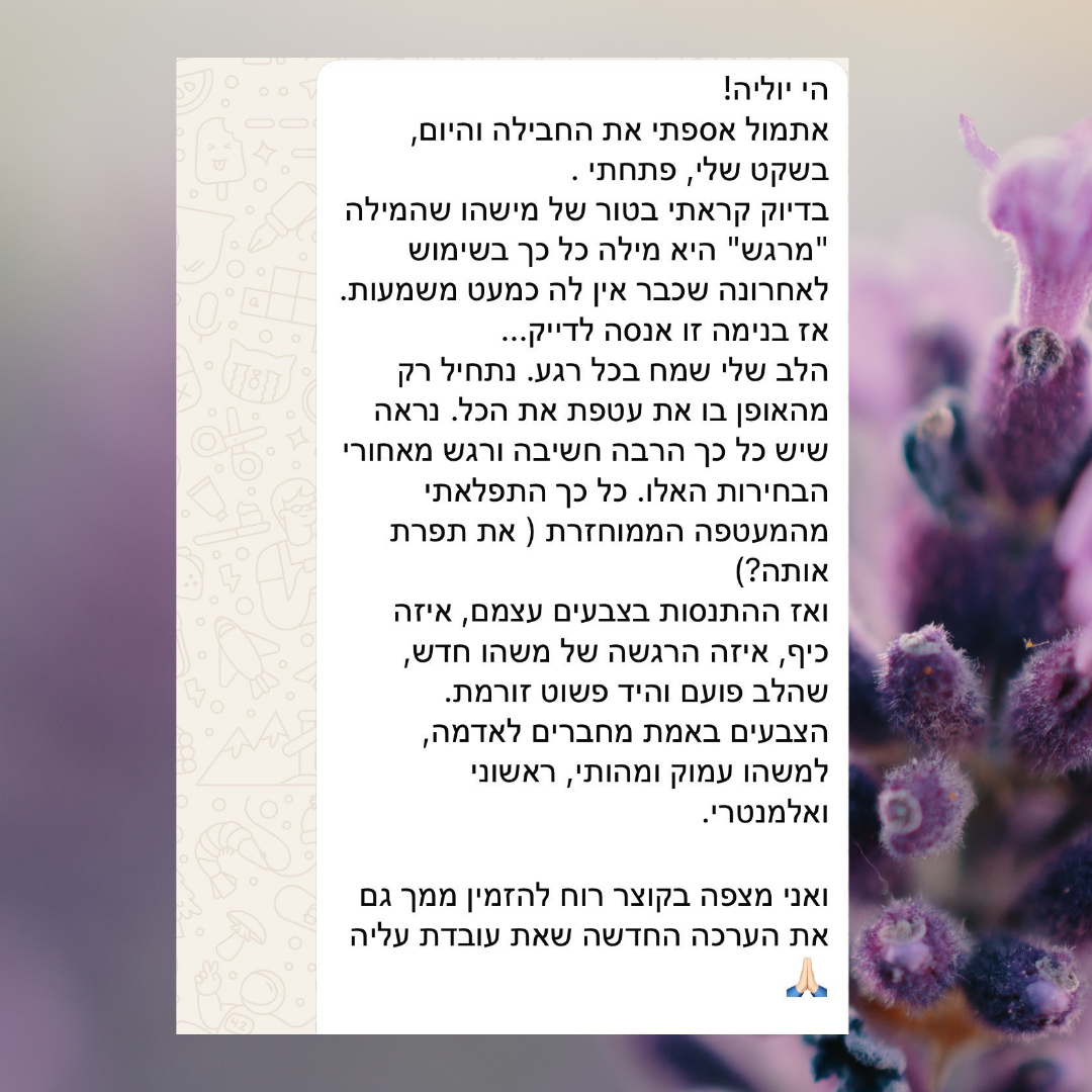כל הצבעים שתקבלו במועדון הם שיחה אישית שלי ושלכם, הם אקסקלוסיבים רק לכם ואני לא מציעה אותם למכירה.